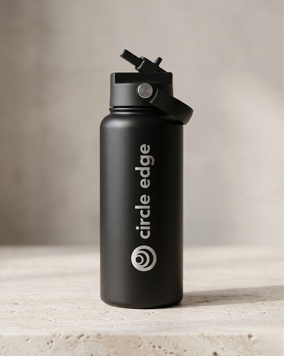 Stay hydrated in style with the Circle Edge reusable water bottle, designed for everyday use.