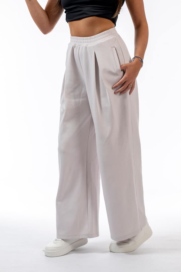 Elevate your athleisure style with our pleated wide-leg track pants.