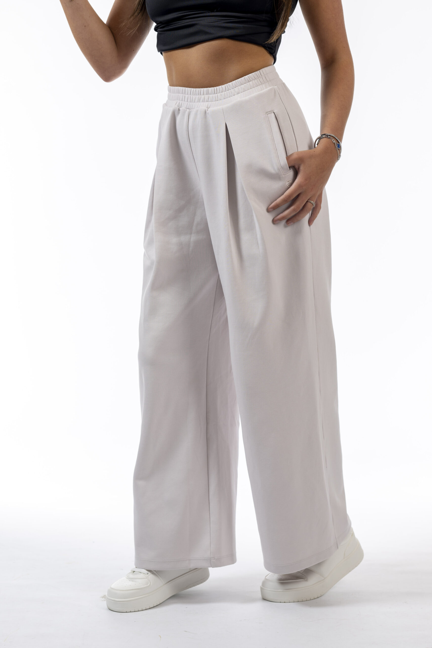 Elevate your athleisure style with our pleated wide-leg track pants.