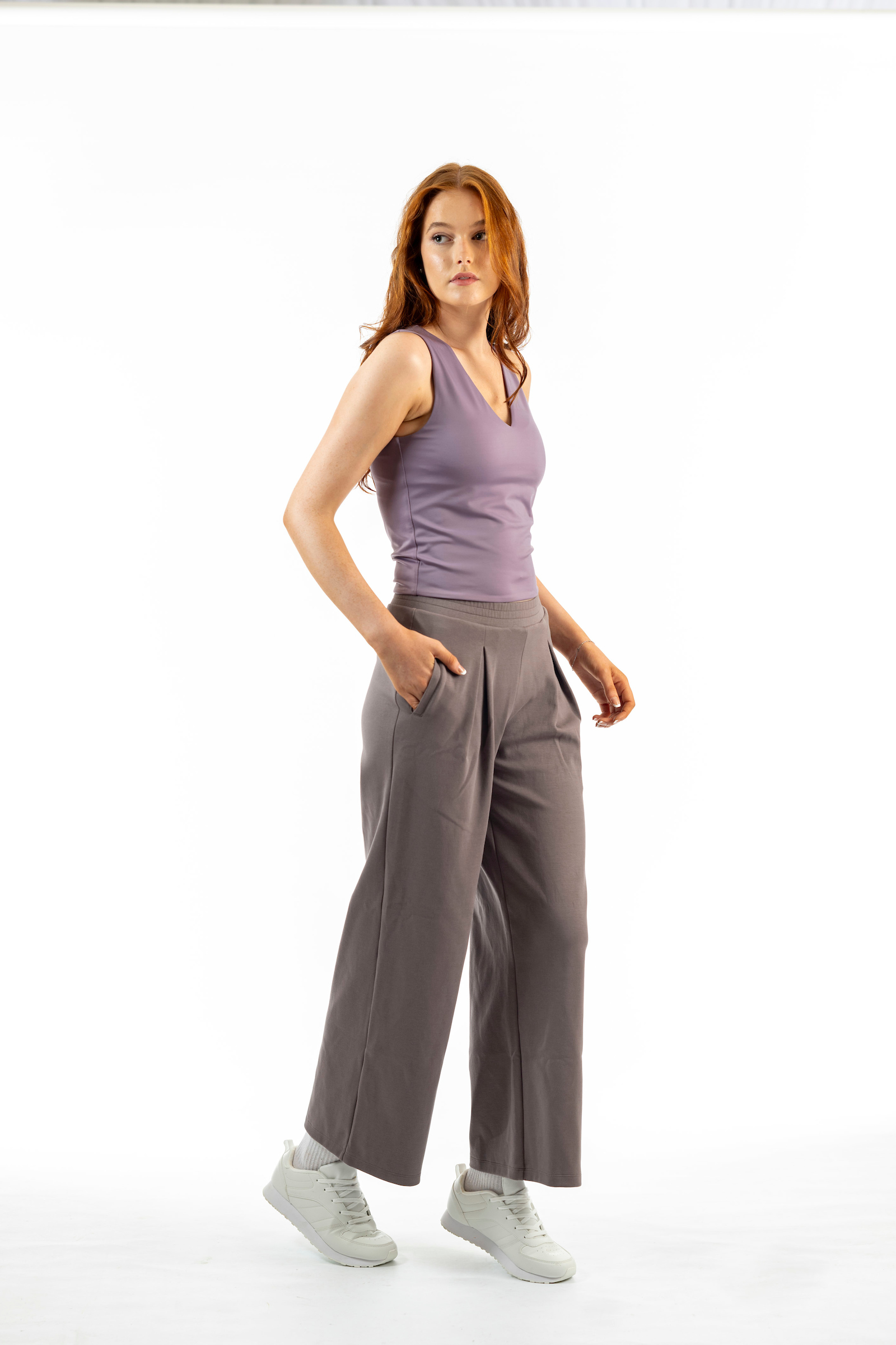 Elevate your athleisure style with our pleated wide-leg track pants.